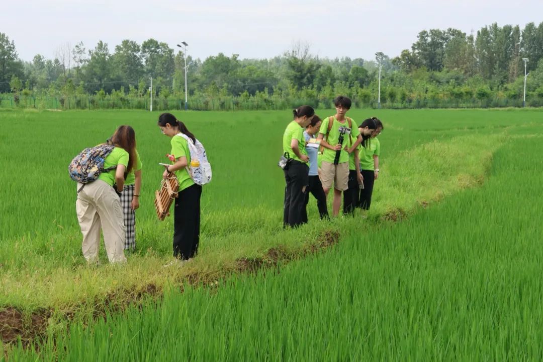 在“一水两用、一田双收”的稻渔共生田里,团队成员们细致分辨植物种类,观察作物生长状况,灵活运用在校所学的理论知识,对目之所见的病虫草害进行识别。切身感受到在有限的耕地面积不断缩小、食品安全和环境问题日趋严峻的形势下,植保肩负的使命和任务更加崇高。