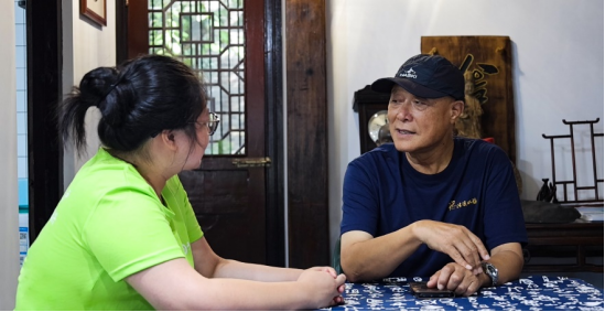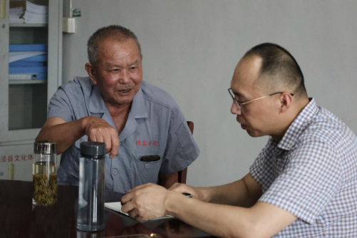 团队成员就语言景观与乡村振兴战略采访庞焕泰老先生 通讯员 张子悦 摄