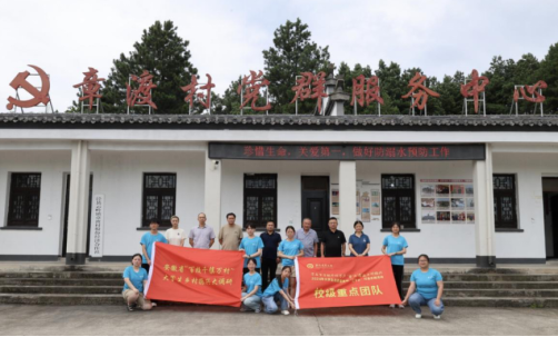 实践团与章渡村村干部和工作队队员合影留念 通讯员 吕彭怡然 摄