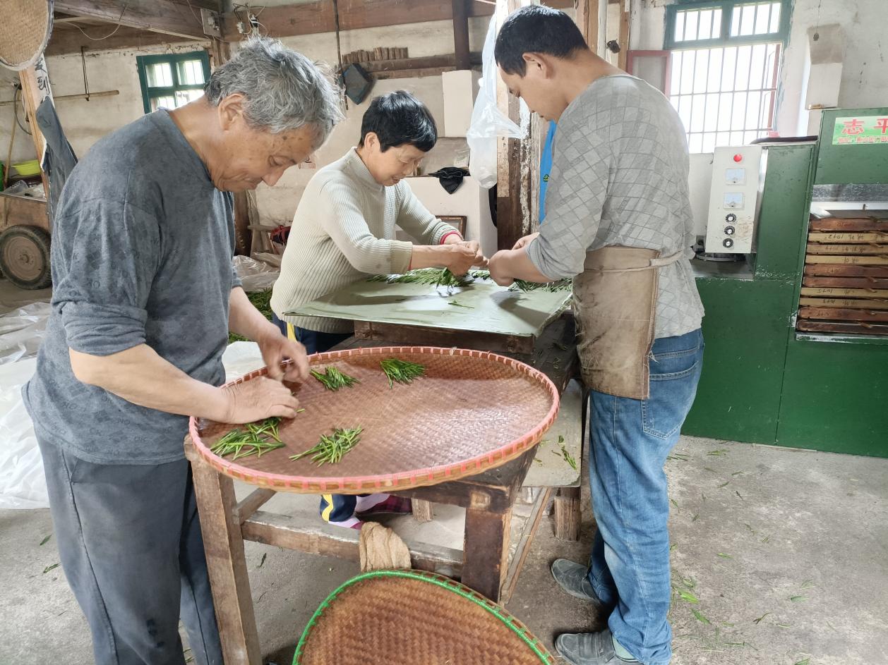 作为尖茶中的珍品,猴魁茶以“挺直肥壮、苍绿毫白、香高味醇”闻名。每日雾退前,塘田村的村民便上山采摘8—10厘米的“三叶一尖”鲜叶,经拣尖、杀青、理条、整形、烘干等工序,3人协作方能成就一盏好茶。如今,塘田村160余户茶农年均制作猴魁8万斤,产值达700万元,猴魁已成为村民腰包的“硬支撑”。