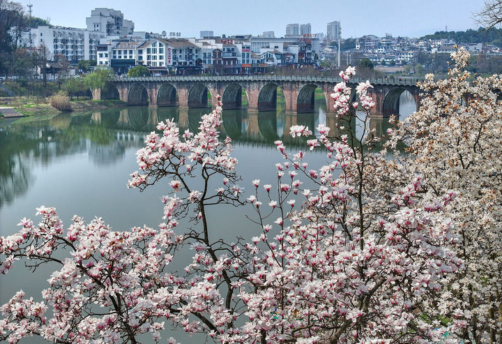 这是2024年3月12日在凯发k8省黄山市歙县新安江畔多景园拍摄的玉兰花(无人机照片)。新华社发(施亚磊摄)