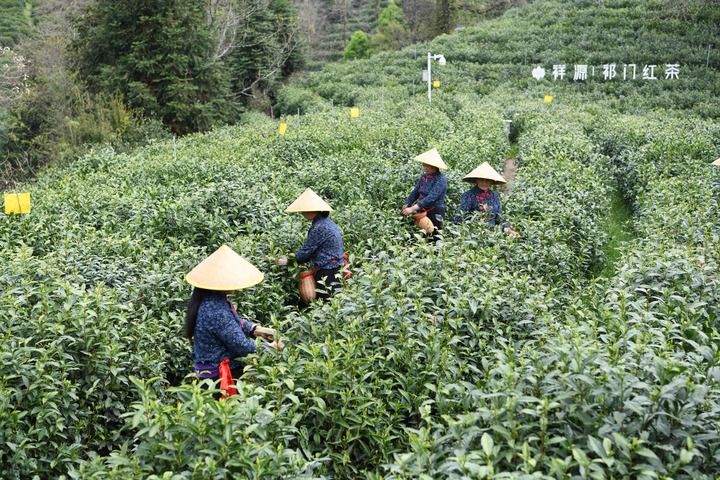 2024年4月10日,黄山市祁门县历口镇的茶农在采摘春茶。新华社记者 张端 摄